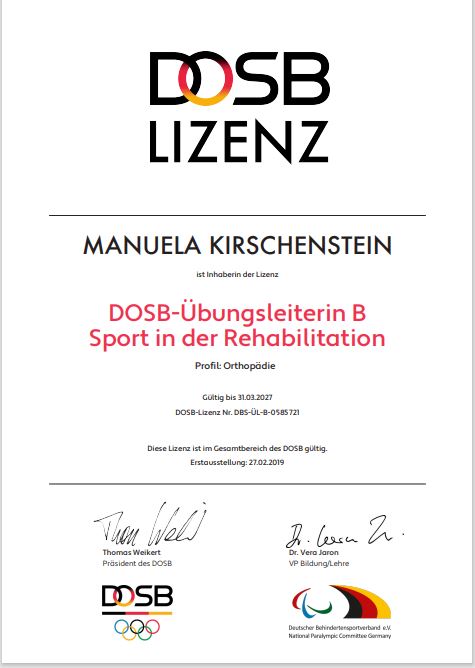 oder ärztliche Verordnung für Reha-Sport, vgl. Infos unter Reha-Sport.